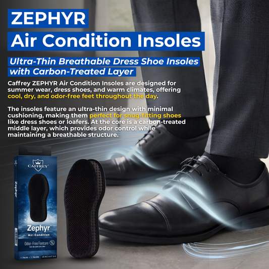 Caffrey ZEPHYR Air Condition Insoles – Ultra-Thin Breathable Dress Shoe Insoles with Carbon-Treated Layer, Airflow Cooling System, Odor Control, Non-Slip Mesh & Dimple Design, Lightweight Summer Comfort