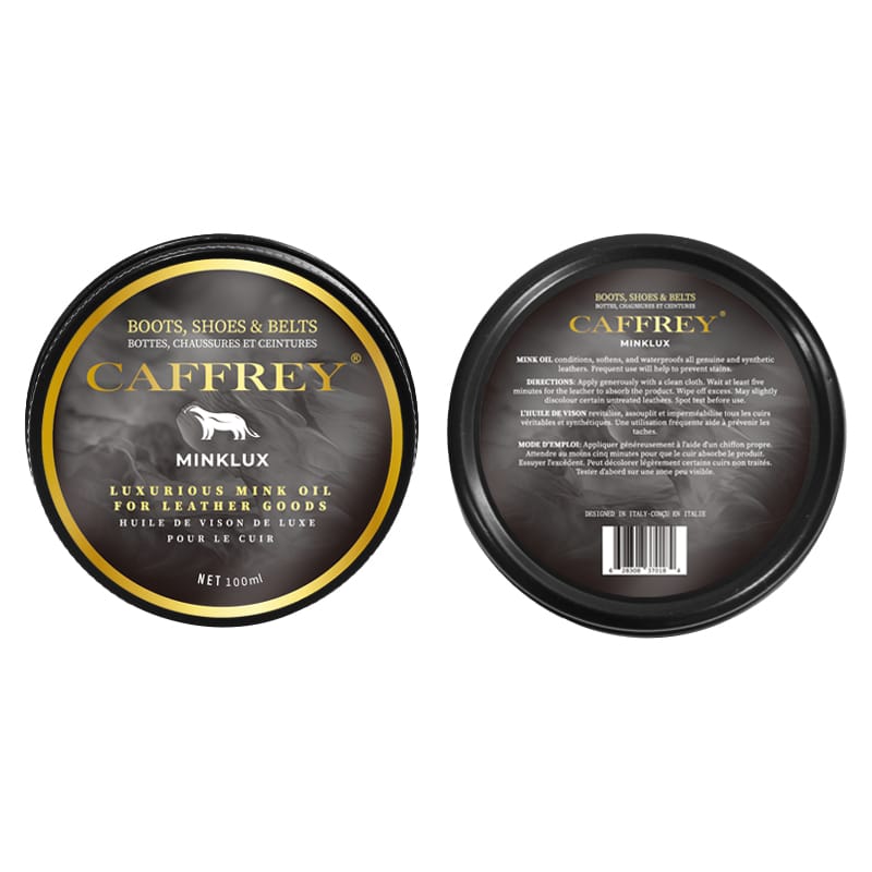 Caffrey Minklux is the purest and most luxurious mink oil, specially formulated to provide deep nourishment for all types of leather. It softens, hydrates, and protects leather goods from mold, stains, and harsh weather. This premium formula revitalizes leather, restoring its natural luster and extending its lifespan. It offers enhanced resistance to water, cracking, and wear, ensuring leather remains soft, supple, and resilient for years to come.