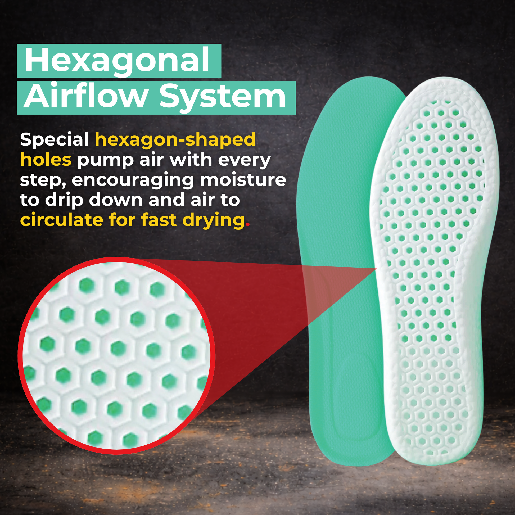 Caffrey Odour Smart Insoles – Cushioned Shoe Inserts with Hexagonal Airflow, Moisture-Wicking & Odour Control