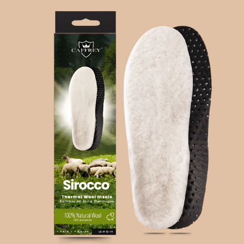 Embrace winter with Sirroco Thermal Wool Insoles, meticulously crafted from 100% natural, high-quality wool. These insoles feature wool placed on top of a thermal foil layer, which is encased between a special rubber bed to maximize insulation and comfort. Enjoy the exceptional warmth and cushioning, ensuring your feet remain cozy and comfortable in even the harshest winter conditions. Discover the perfect blend of natural warmth and innovative design with Sirroco.